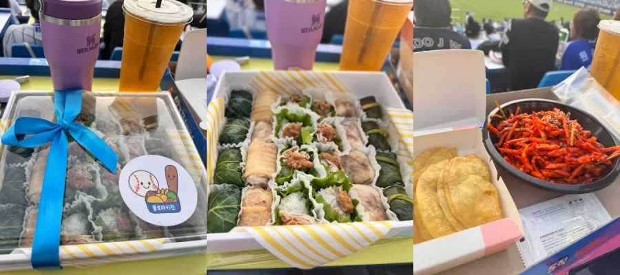 야구 관람의 또 다른 재미는 바로 먹거리입니다. 이번 경기에서는 사전 예약 도시락과 현장 먹거리 모두 경험했으며, 각각의 장점이 뚜렷했습니다.