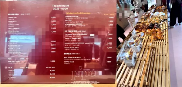 - 운영방식: 선주문 후 착석 (입장 후 진열된 빵과 음료를 보고 계산대에서 주문, 번호표 수령 후 착석)