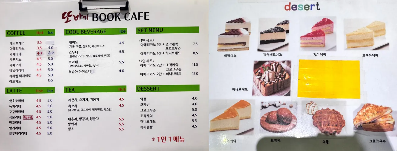 또바기 북카페 메뉴 소개