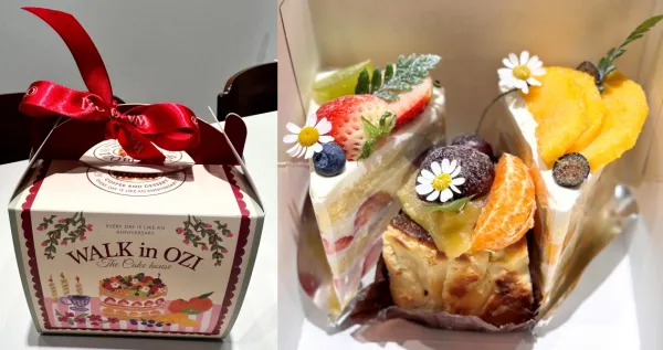 구매한 케이크는 귀여운 체크 패턴 박스와 붉은 리본이 장식된 패키지에 담겨 제공됩니다. 패키지 전면에는 “WALK in OZI – The Cake House”라는 슬로건과 함께 일러스트 스타일의 생일 케이크 이미지가 프린트되어 있어 선물용으로도 손색이 없습니다. 특히 생일, 기념일, 홈파티에 잘 어울리는 느낌이며, 홀케이크를 구매하면 정식 예약 포장도 가능하다고 하니 단체 주문이 필요할 때도 유용해 보였습니다.