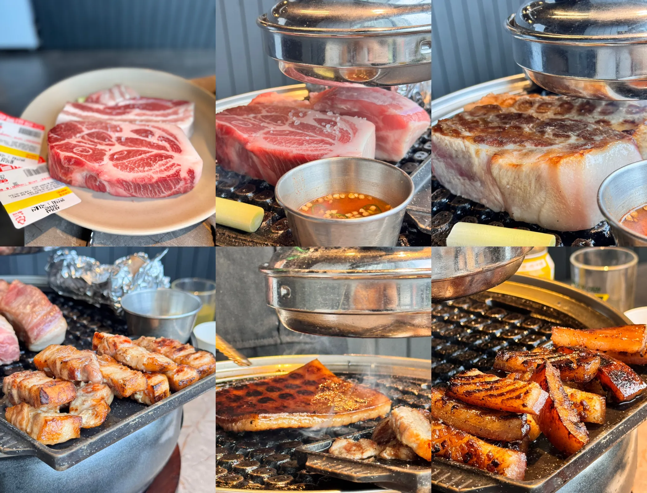 불판 한쪽에 고기를 굽고, 다른 한쪽에는 따로 구워진 고기 조각을 모아 여유롭게 먹을 수 있어 먹는 타이밍도 완벽히 분배할 수 있었습니다.