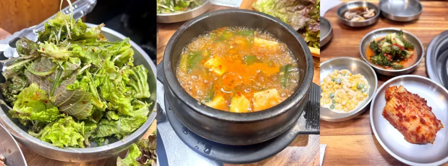 상추겉절이는 고기와 찰떡궁합으로 상큼하면서도 깔끔했고, 열무김치는 시원한 맛이 인상적이었습니다. 옥수수콘마요는 아이들도 좋아할 맛으로, 고기 먹는 중간중간 입가심용으로 훌륭했습니다.