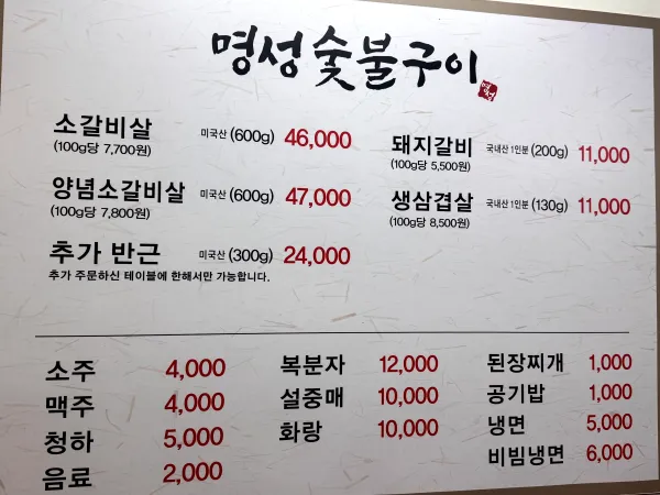 - 상호명: 명성숯불구이