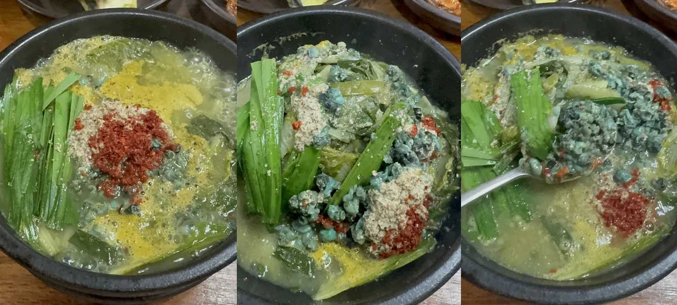 - 국물 베이스: 들깨 + 된장 + 우거지 조합