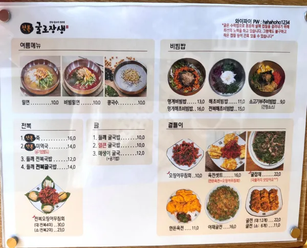 - 굴국밥류 : 10,000원~12,000원 (들깨/얼큰/매생이 선택 가능)