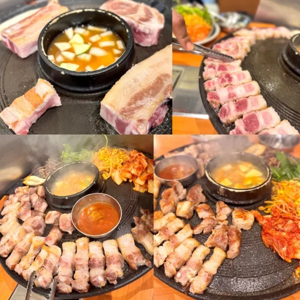 - 대표메뉴 : 흑돼지 삼겹살+꽃목살, 볶음밥, 김치말이국수, 솥뚜껑 세트 메뉴