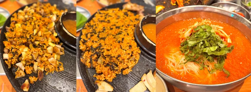 고기를 실컷 먹은 뒤 빠질 수 없는 메뉴, 볶음밥과 김치말이국수.