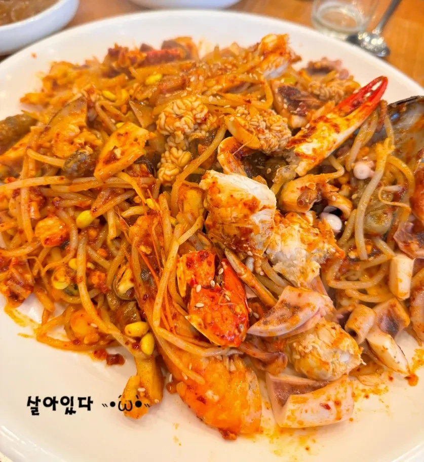 - 매콤한 해물 양념과 김치가 어우러져 환상적인 맛