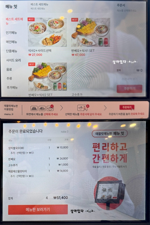 테이블마다 태블릿을 통해 편리하게 주문 가능