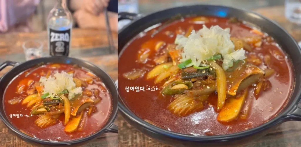 돼지고기가 듬뿍 들어간 칼칼한 짜글이 스타일 국물 요리