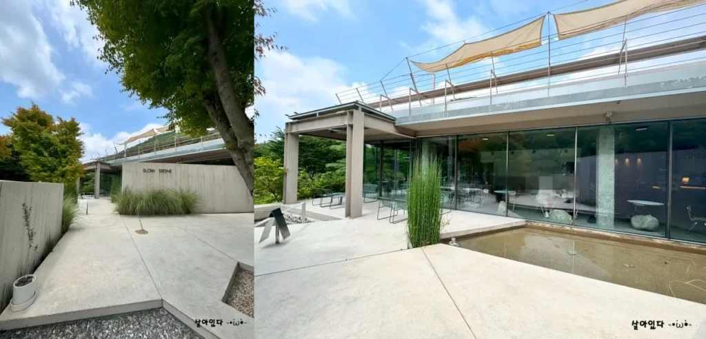 슬로우스톤은 숲속의 편안한 카페로, 주변의 자연을 만끽하며 여유로운 시간을 보낼 수 있는 장소입니다. 카페를 만들 때 나온 돌덩이들을 인테리어에 활용하여 독특한 분위기를 자아냅니다. 문 손잡이부터 테이블까지, 곳곳에 돌로 만든 인테리어가 눈길을 끕니다.