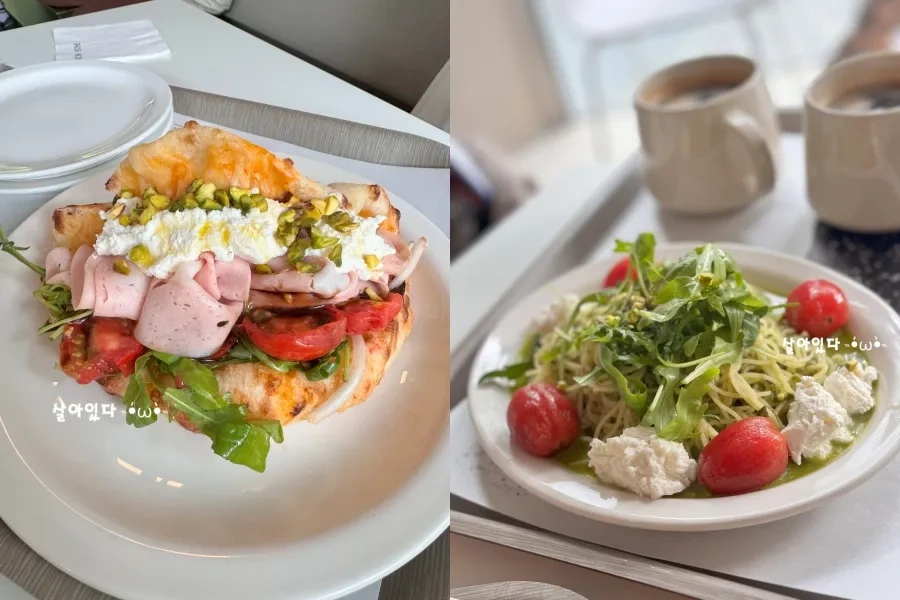 - 냉 바질 패스토 카펠리니: 얇은 카펠리니 면을 사용한 냉파스타로, 담백하고 깔끔한 바질 패스토 소스가 일품입니다. 치즈를 섞으면 부드럽고 꾸덕한 맛을 느낄 수 있어, 두 가지 맛을 동시에 즐길 수 있습니다.