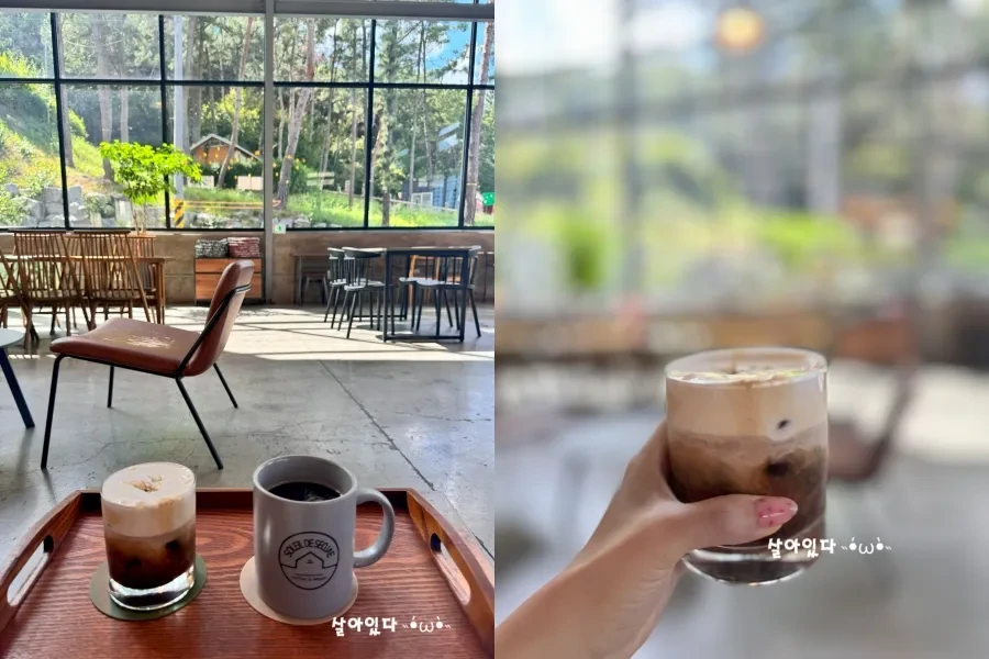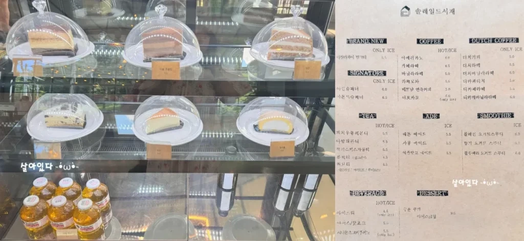 날이 흐린 날에도 통창 덕분에 자연광이 들어와 따뜻한 커피를 마시며 외부 경치를 즐길 수 있습니다. 날씨가 좋은 날에는 뒷동산에서 산책한 후 카페에서 커피를 즐기는 것도 아주 좋습니다. 솔레일드 카페는 자연과 커피를 동시에 즐길 수 있는 완벽한 장소입니다. 다음에는 친구들과 함께 다양한 메뉴를 더 시도해보고 싶네요!