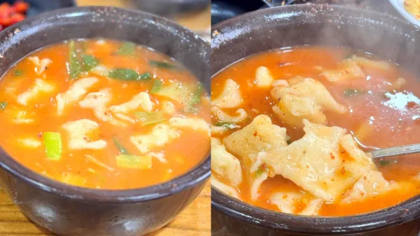 이곳의 **대표 메뉴는 ‘어탕 손수제비’**입니다. 붉은 국물에 보글보글 끓여 낸 민물고기탕에 수제비를 넣은 이 음식은 보기만 해도 군침이 돌죠.
