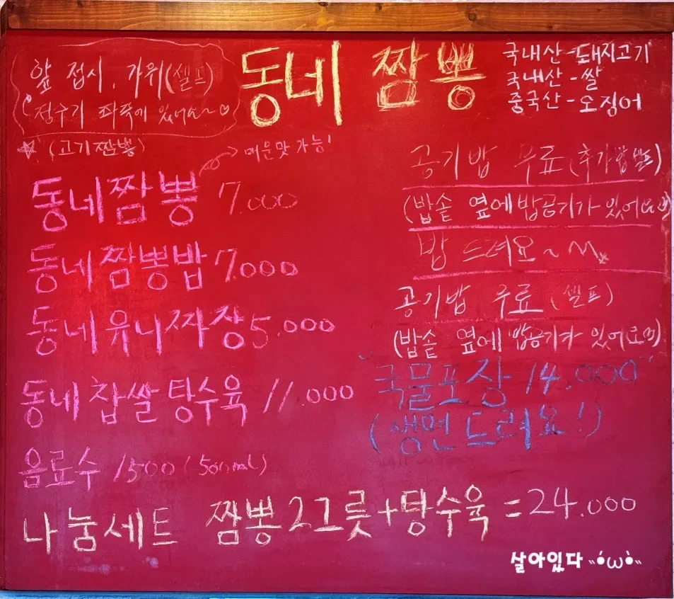 동네짬뽕 본점 메뉴 소개