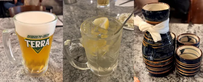 - 주류 : 생맥주, 가쿠빈 하이볼, 도쿠리, 잔술 사케