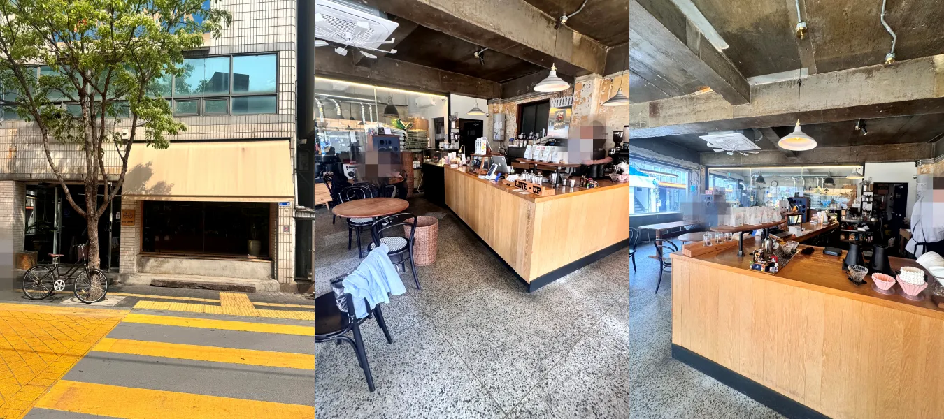 - 내부 인테리어 : 노출 천장과 우드 톤 가구, 잔잔한 조도는 고요하면서도 따뜻한 무드를 조성합니다. 특히 창가석은 자연광이 잘 들어와 사진 찍기에도 탁월합니다.
