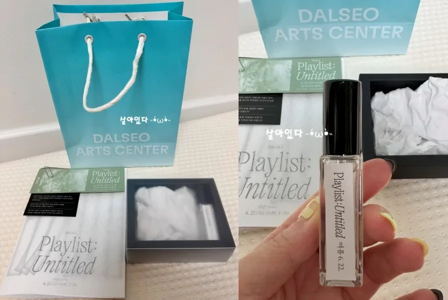 퇴장 시, 달서아트센터에서 준비한 미니 향수가 담긴 종이가방 제공