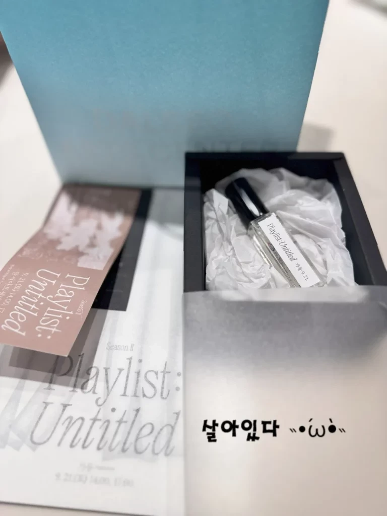 공연이 끝난 후, 관객들에게는 우디향이 나는 미니 향수가 선물로 주어졌습니다. 지난 공연에서도 선보였던 이 선물은 후각을 통해 공연의 여운을 오래도록 간직할 수 있도록 해 주는 세심한 배려였습니다. 음악뿐만 아니라 향기까지 남겨주는 이번 공연의 디테일에 감탄할 수밖에 없었습니다.