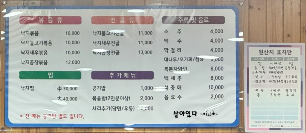 이곳에서는 다양한 낙지 요리를 맛볼 수 있습니다.