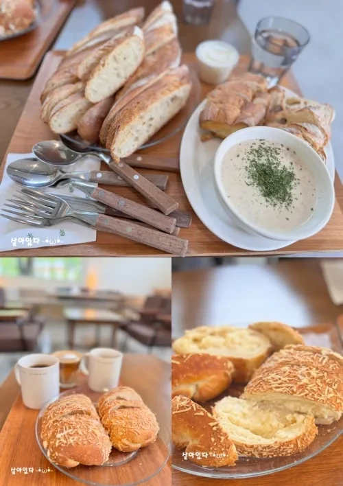 또한, 바게트와 깜빠뉴를 주문하면 함께 제공되는 생크림도 강한 단맛이 아니라 빵과 잘 어울리는 담백한 맛을 자랑합니다. 빵을 좋아하는 분들이라면 이곳의 베이커리를 꼭 즐겨보세요.