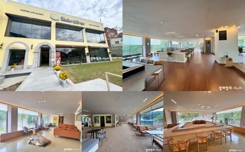 버터앤브루는 팔공산의 자연을 배경으로 한 넓고 쾌적한 대형 카페로, 고급 베이커리와 커피를 함께 즐길 수 있는 공간입니다.