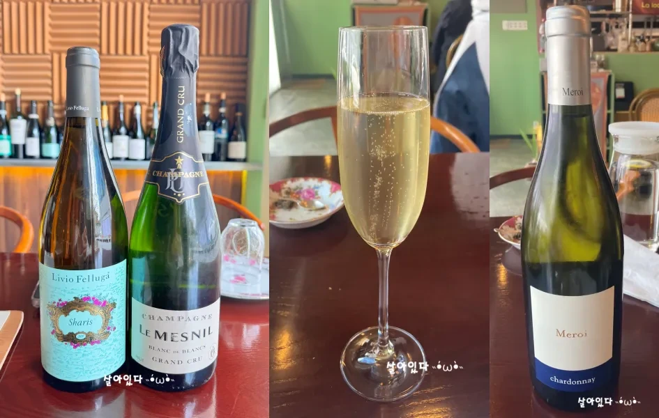 또한, 마지막에 Meroi Chardonnay를 추가로 주문했습니다. 이 와인은 과일향과 단맛이 조화를 이루며, 아카시아 향으로 마무리되는 맛이 인상적이었습니다.