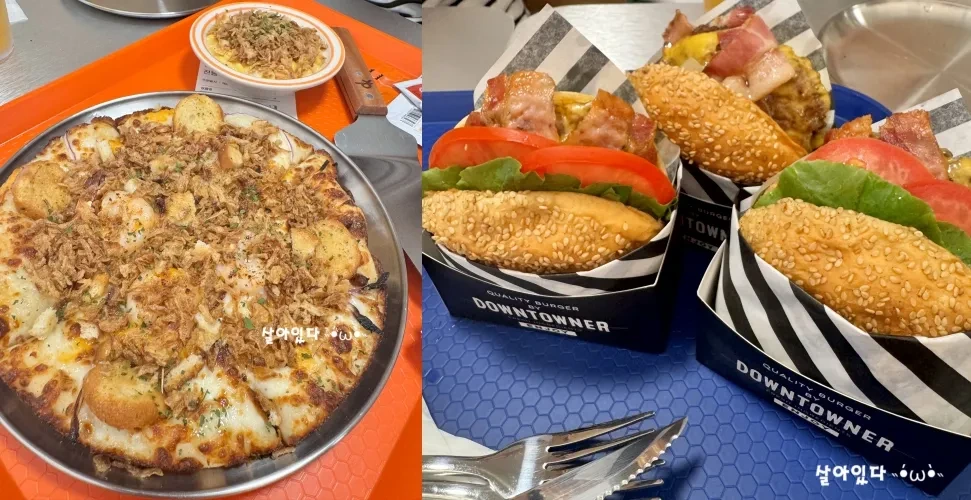 Downtowner와 CLAP PIZZA는 버거와 피자를 각각 취향에 맞게 선택해 나눠 먹을 수 있는 곳으로, 한 자리에서 두 가지 브랜드의 인기 메뉴를 맛볼 수 있다는 점이 큰 장점입니다.