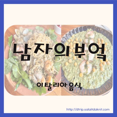 남자의부엌 이탈리아 레스토랑은 기본 이탈리아 요리에 한식 감성을 더한 메뉴 구성이 특징입니다.