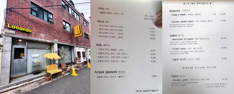 로칸다는 수성구 골목 안쪽에 자리한 곳으로, 외관부터 개성 있다. 붉은 벽돌 건물에 노란 간판과 파스텔톤 파라솔이 설치되어 있어 눈길을 끈다. 겉으로 보기에는 소박하지만 내부로 들어서면 완전히 다른 분위기가 펼쳐진다.