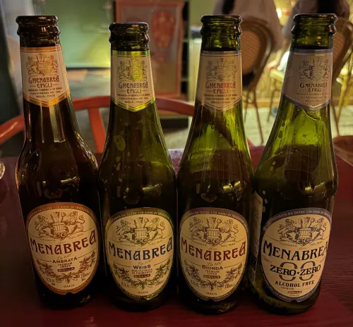 로칸다의 또 다른 강점은 이탈리아 맥주 브랜드 **메나브레아(Menabrea)**를 한 자리에서 맛볼 수 있다는 점이다. 이날은 4종류를 모두 시음했다.