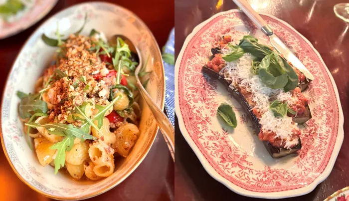 구운 가지는 사이드 메뉴지만 존재감이 크다. 가지 위에 토마토소스를 올리고 파마산 치즈를 듬뿍 뿌려 구워낸 요리로, 오븐에서 구워져 치즈가 노릇하게 녹아들어가면서 풍미가 진하다. 가지 특유의 부드러움과 치즈의 고소함이 조화롭고, 토마토소스가 산뜻함을 더한다. 채소 요리임에도 맛의 깊이가 있어 부담스럽지 않고, 와인과 곁들이기에도 적합하다.